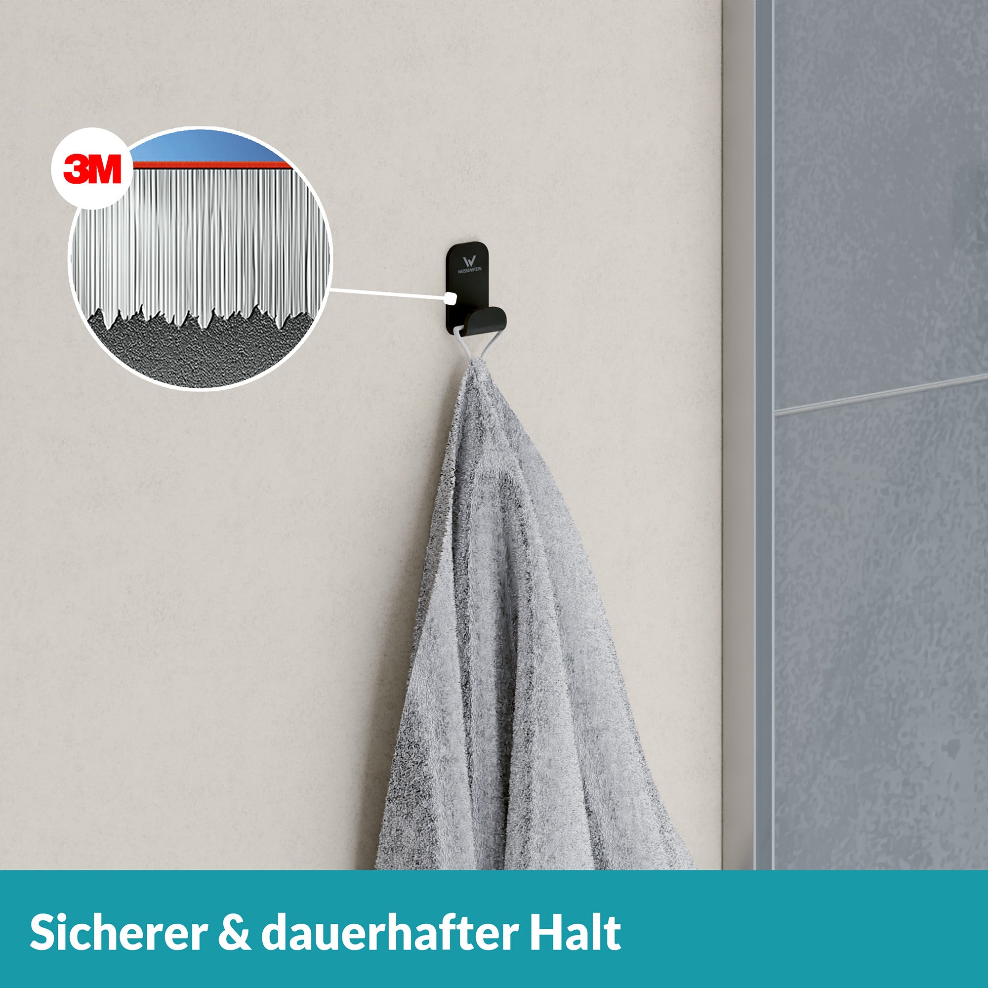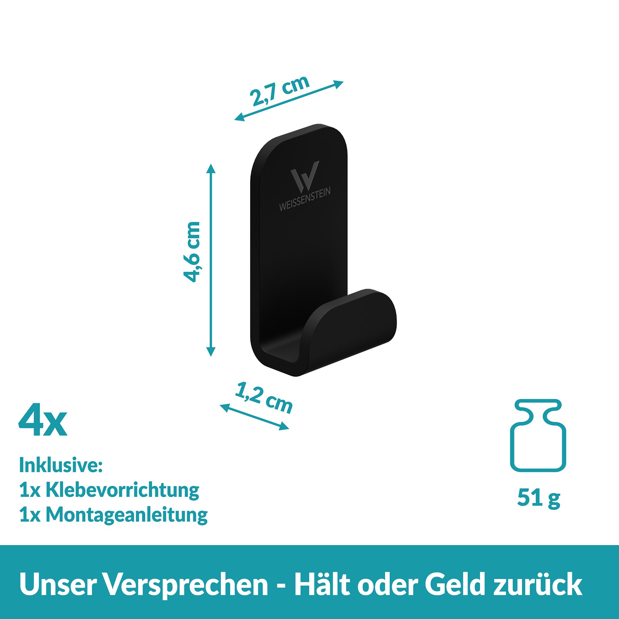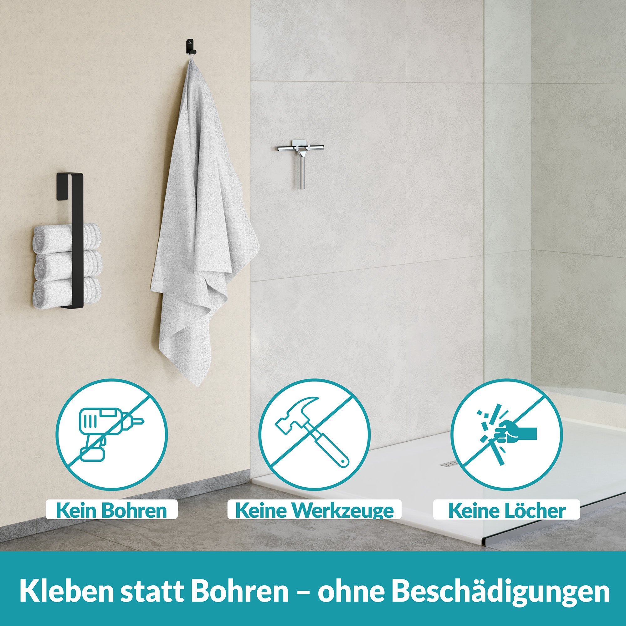 Handtuchhaken Set schwarz - 4 Edelstahl Haken - ohne Bohren