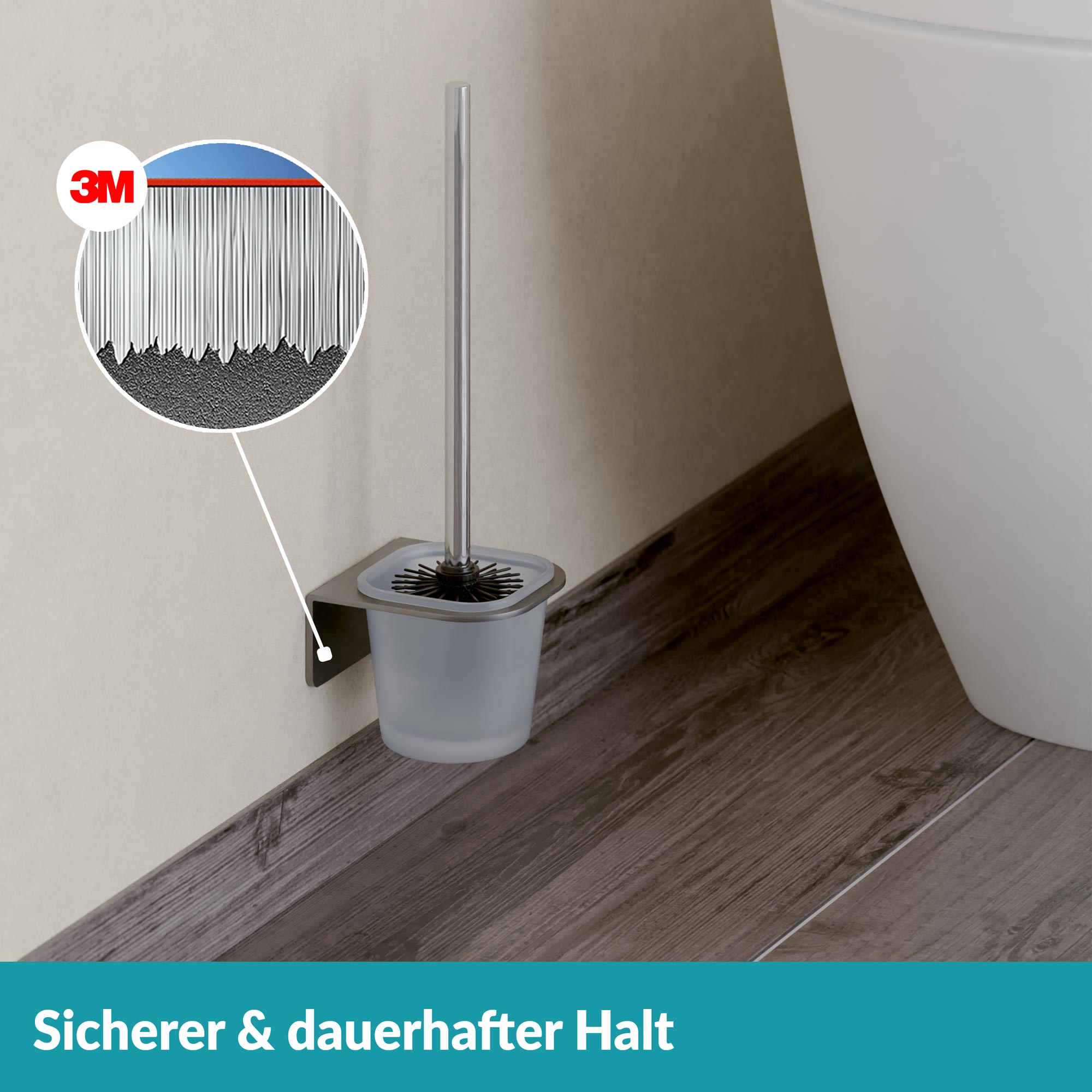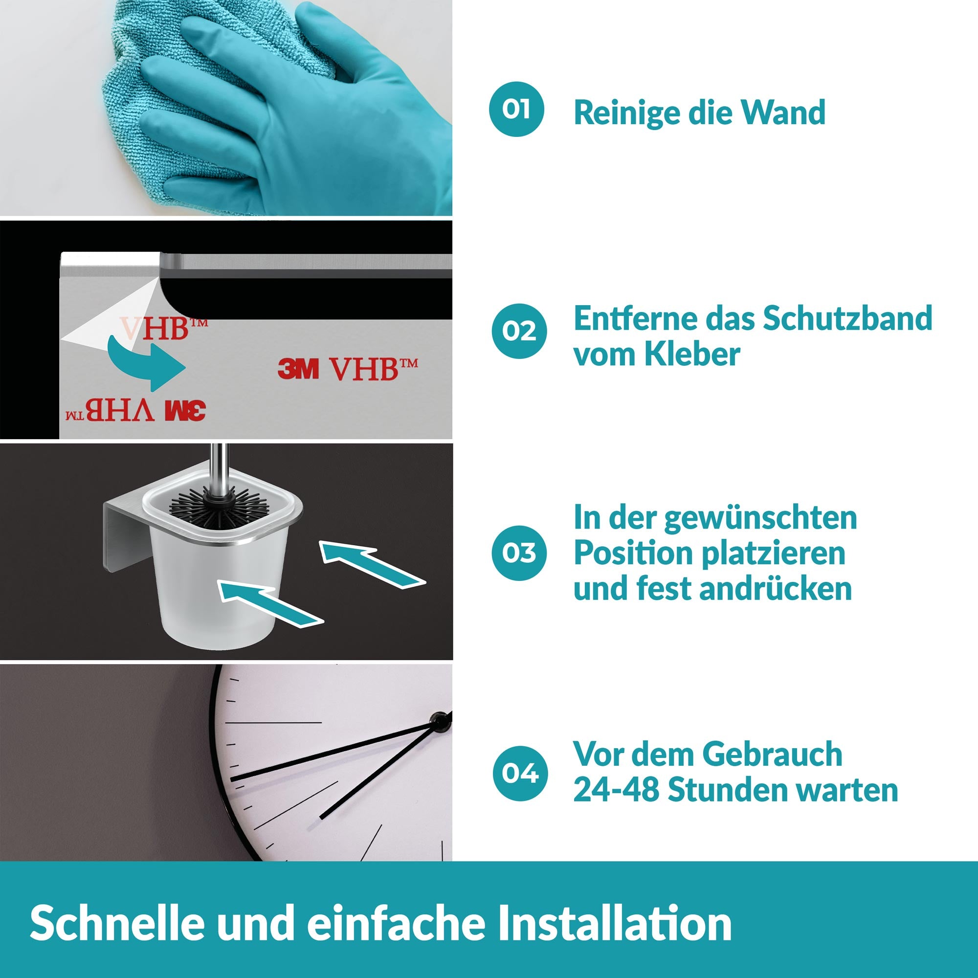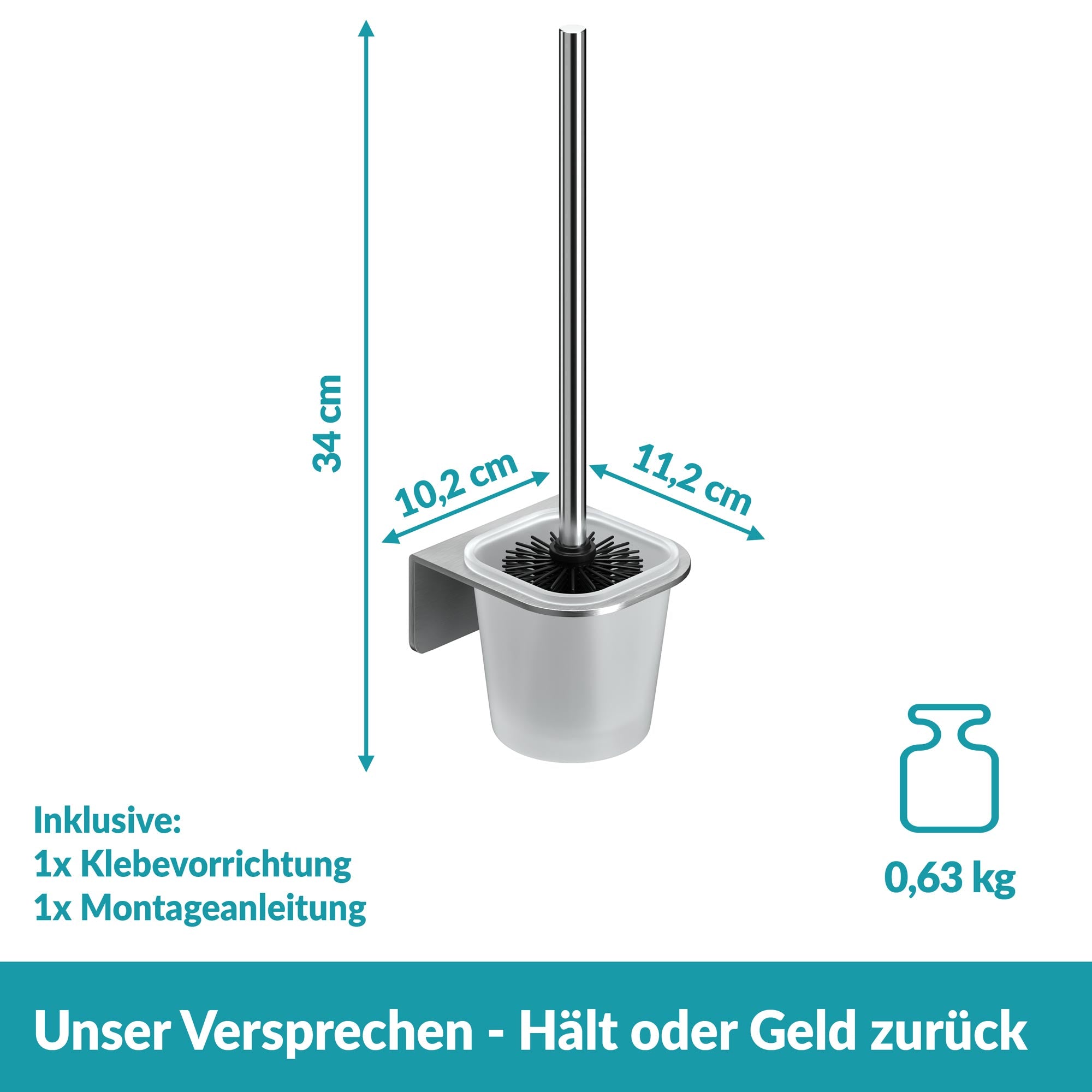 Toilettenbürstenhalter selbstklebend - Mit Toilettenbürste - Ohne Bohren - Edelstahl & Glas