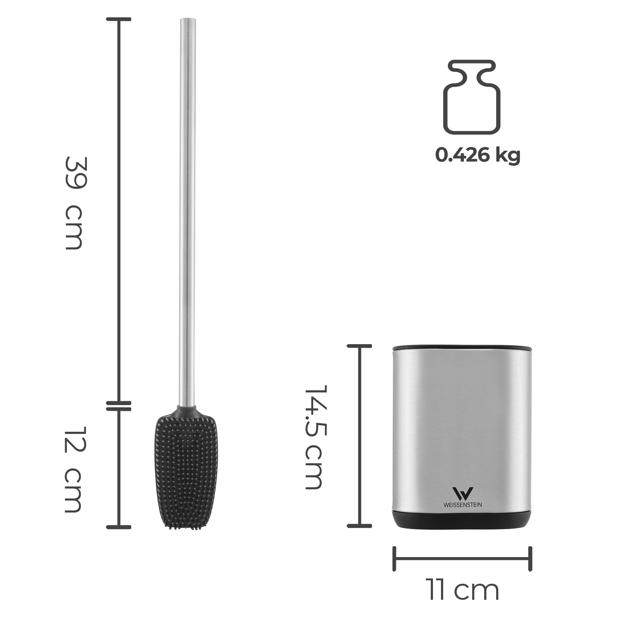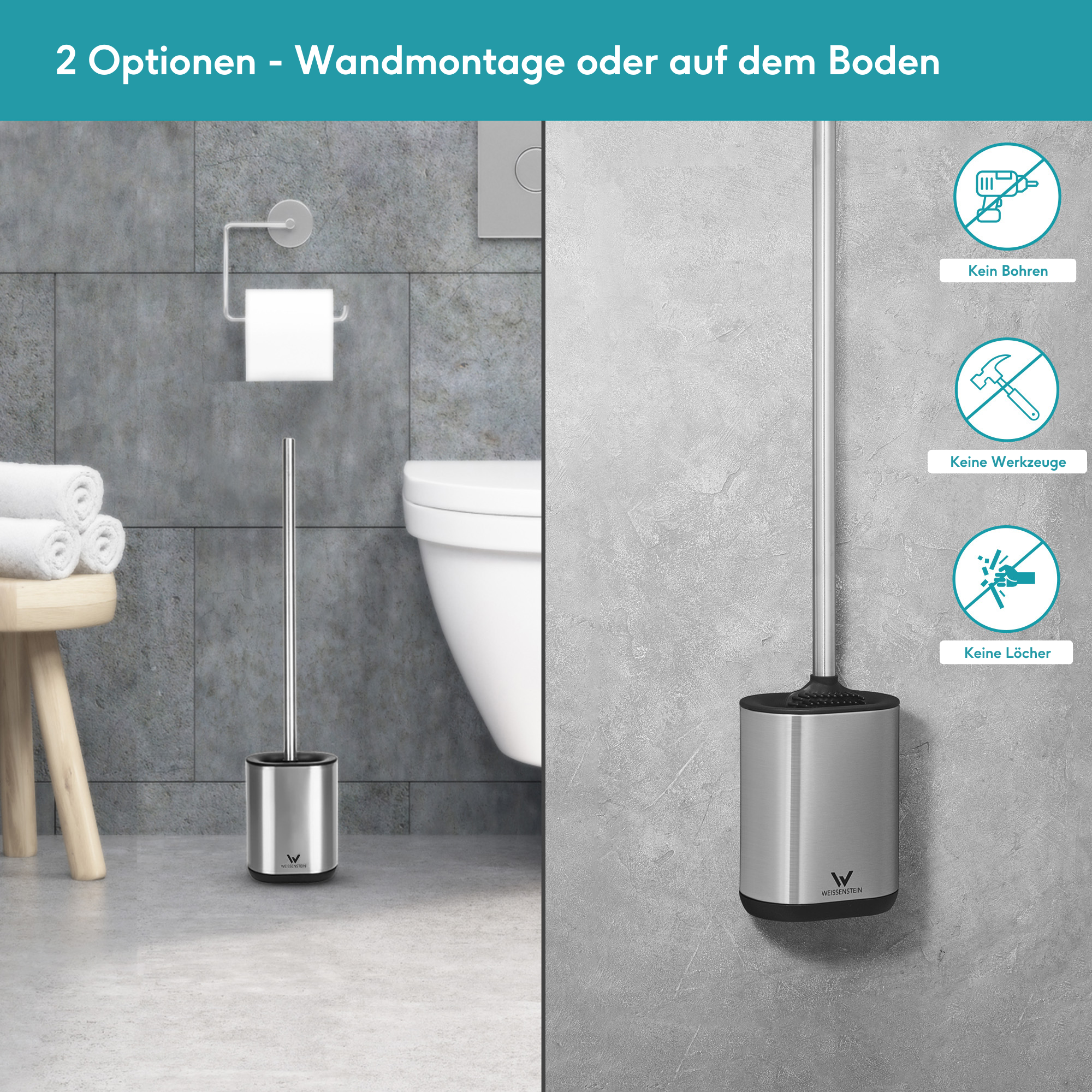 - Komplettes WC-Bürstengarnitur Set aus Edelstahl, inkl. Halterung und Silikonbürste