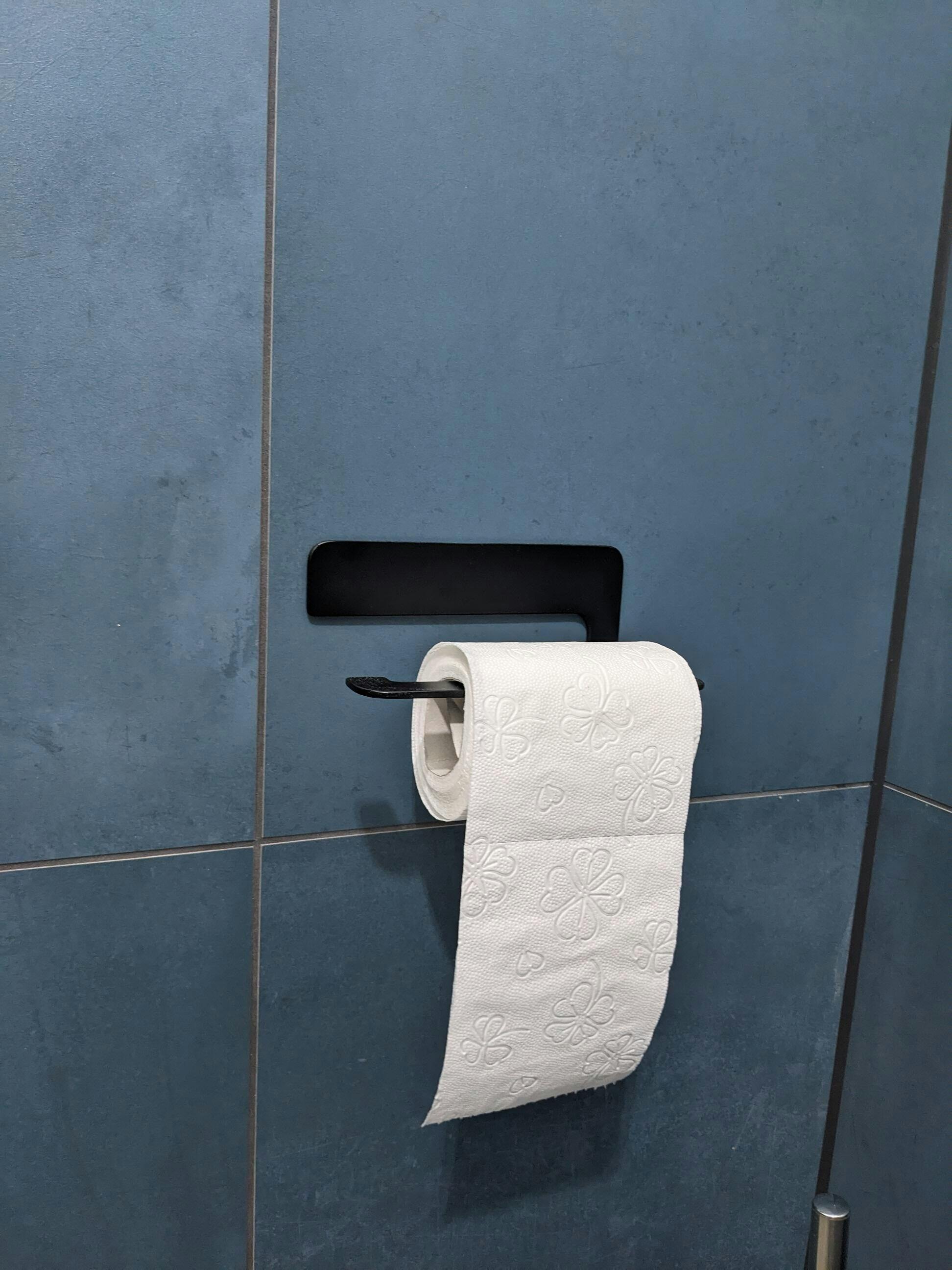 Moderner Toilettenpapierhalter ohne Bohren - aus einem Stück rostfreiem Edelstahl gebogen und schwarz pulverbeschichtet